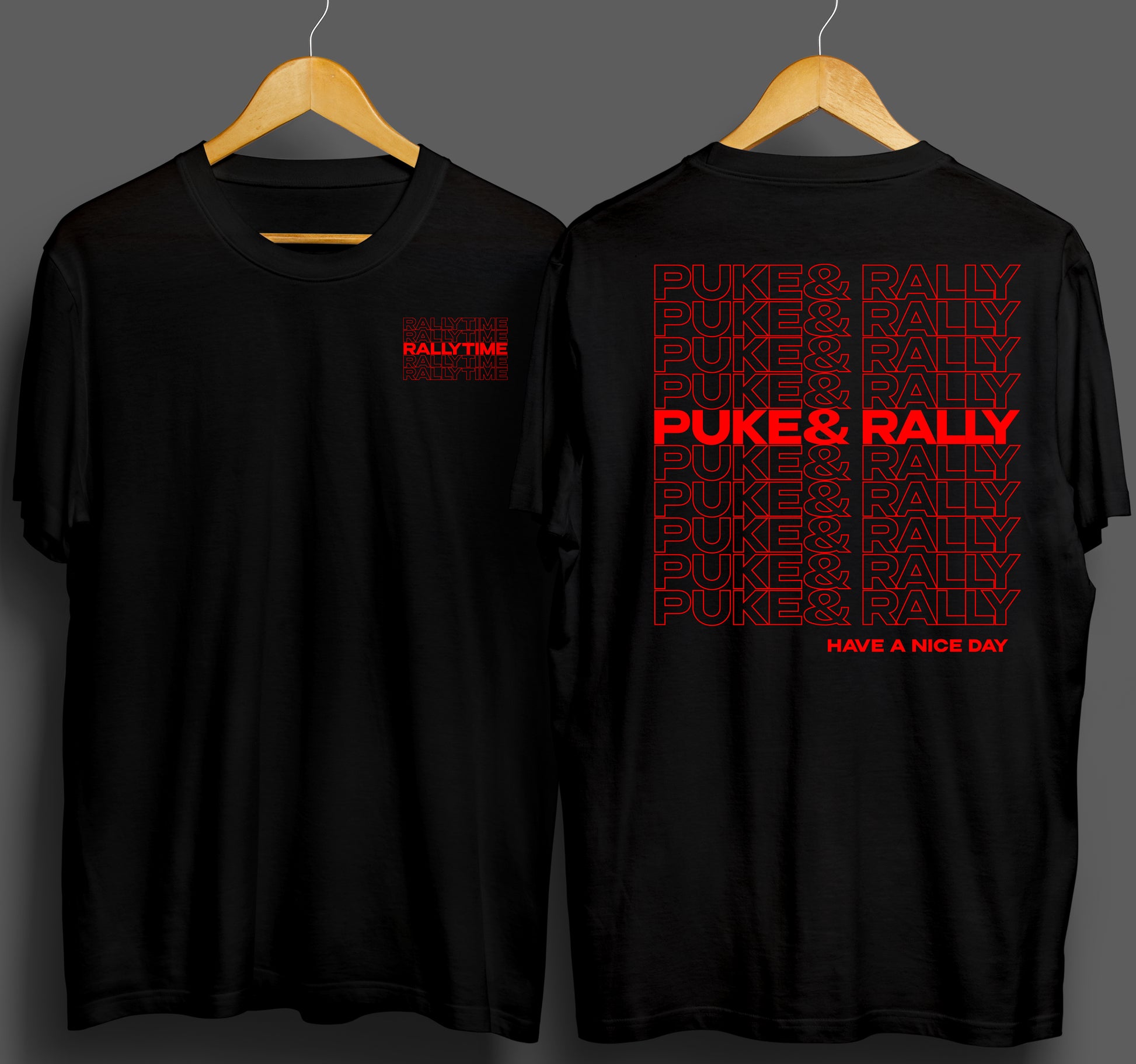 An original tee you can wear at parties, birthdays, and even funerals. Always remember to Puke and Rally.